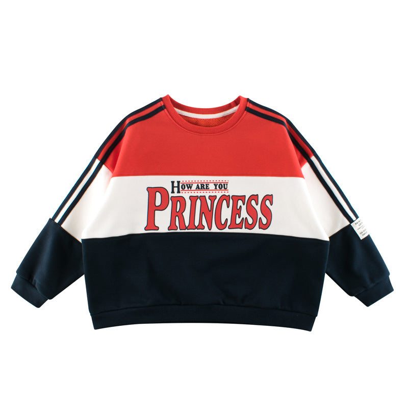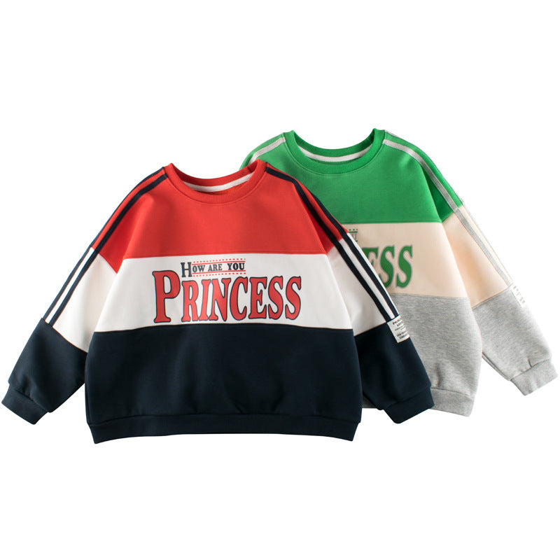 Children Slogan Pattern Color Contrast Design Velvet Hoodies